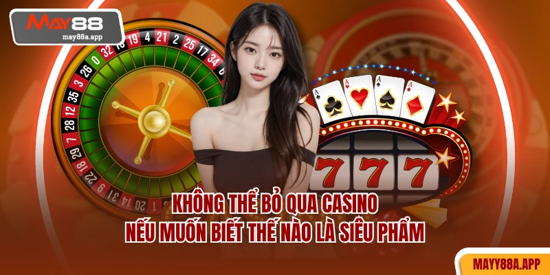 Hiện tại, sảnh casino tại MAY88 quy tụ 17 nhà phát hành có tiếng như Techplay, EVO, VIVO, Ebet, RikVip, 789Club. Một số game hot hit gồm Baccarat, Roulette, Sicbo, Blackjack,… với phiên bản khác nhau để lựa chọn theo sở thích hoặc giới hạn cược.